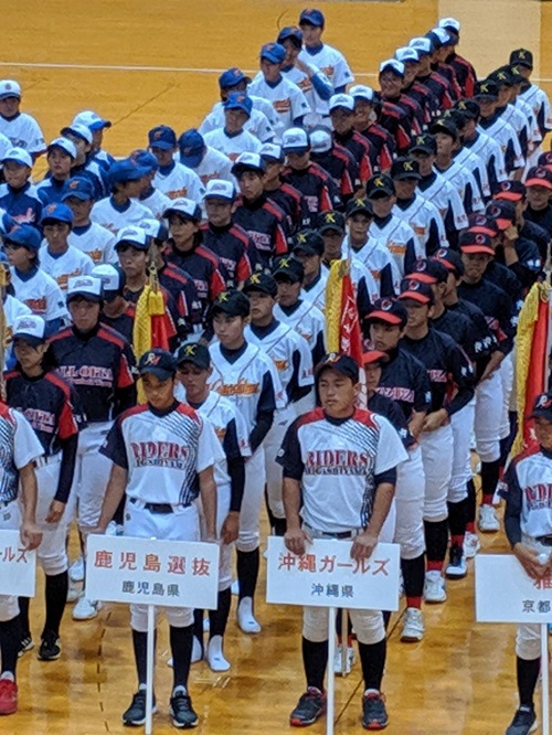 女子野球の全国大会が京都で行われました。23日には他の各県代表の41チームとともに堂々とした態度で開会式に臨みました。 開会式前後では先日行われた熊本の大会で仲良くなった他県の選手と楽しそうに話をする場面も見られました。 交流の輪が広がりつつあり、嬉しく感じることでもありました。