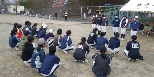 試合終了後には解散式を行いました。全国大会に出場できなかった無念さもありましたが,笑顔で仲間たちと楽しそうに話をする姿が印象的でした。 この女子野球の活動に関してはたくさんの方々のご協力をいただいています。会場を貸してくださる武中学校,武中野球部,武中サッカー部, 森山旗に招待してくださった川薩地区中体連の先生方,いつもバックアップしてくださる県中体連軟式野球専門部や県軟式野球連盟の皆様には大変感謝申し上げます。今後ともよろしくお願いいたします。